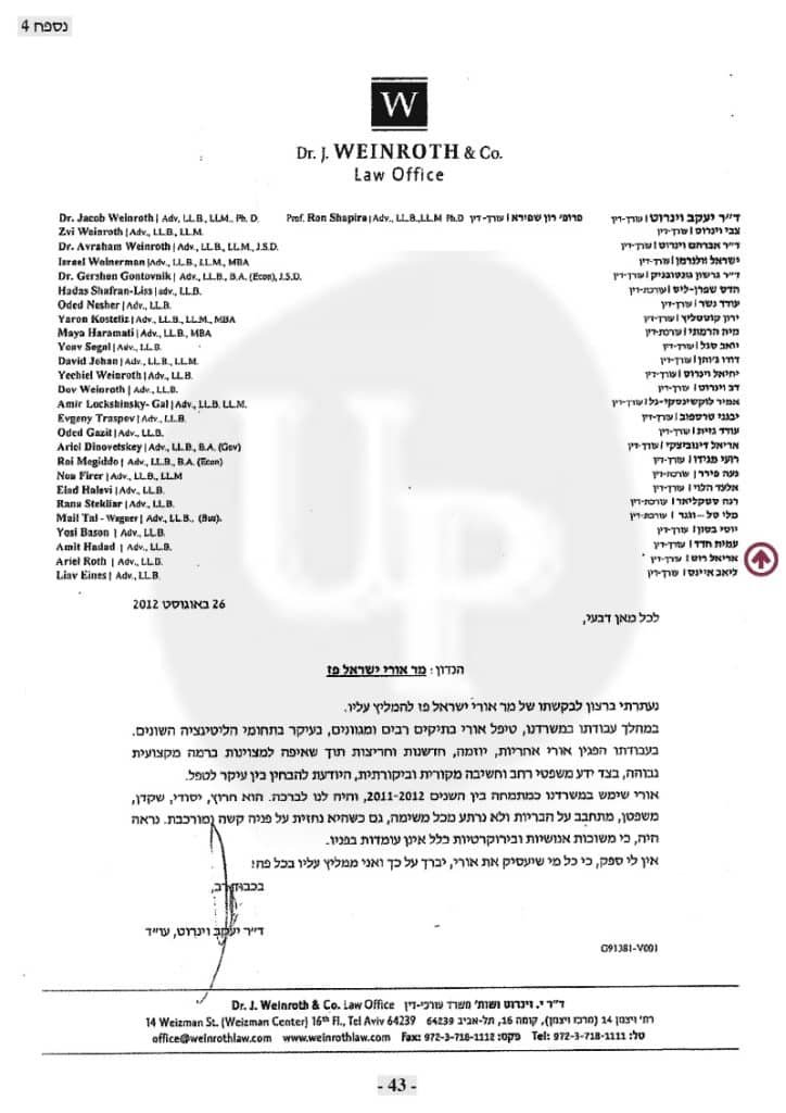 המלצה על עו׳׳ד אורי ישראל פז על ידי ד״ר יעקב וינרוט