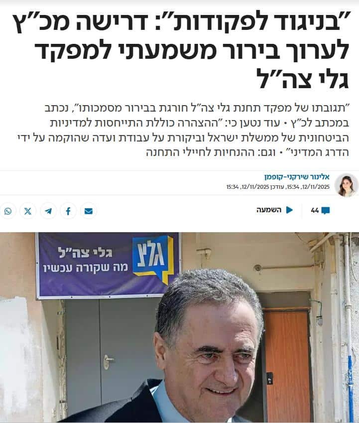 "בניגוד לפקודות": דרישה מכ"ץ לערוך בירור משמעתי למפקד גלי צה"ל